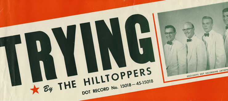Distributed by Dot Records of Gallatin, Tennessee, Trying reached No. 7 on Billboard's best selling pop records list. Much success soon followed. On October 26, 1952 The Hilltoppers appeared on Ed Sullivan's nationally syndicated CBS television show, Toast of the Town. The Juke Box Operators of America voted The Hilltoppers the best vocal combination of 1953 in a Cash Box magazine poll.
