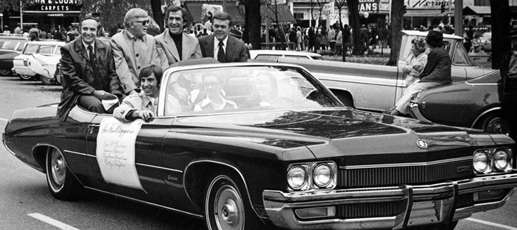 Still best known for P.S. I Love You, which sold over 3 million copies, The Hilltoppers secured fame for themselves and their alma mater. From Van Meter Auditorium to stages around the world, Jimmy Sacca, Don McGuire, Seymour Spiegelman, and Billy Vaughn promoted a clean-cut image of 1950s college life and romantic love. Their music is time-dated, yet timeless. From its beginning at WKU, The Hilltoppers' music will forever exemplify the sounds of a wonderful period in American music. WKU salutes The Hilltoppers for having enhanced America's rich musical tradition.