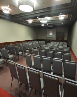 Standard Setup: Lecture style seating for 107. Additionally, there is one head table in the front of the room.