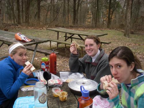 Mary, Jenny, and Sean taking a lunch break on the Elkhorn