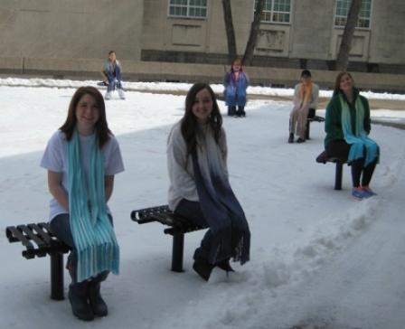 Weaving courses are taught in Room 469 of FAC Building. The facility maintains 11 large treadle looms for student creations. The space has an industrial sink and large tables for dyeing purposes. There are also sewing machines available for other fiber interests.
