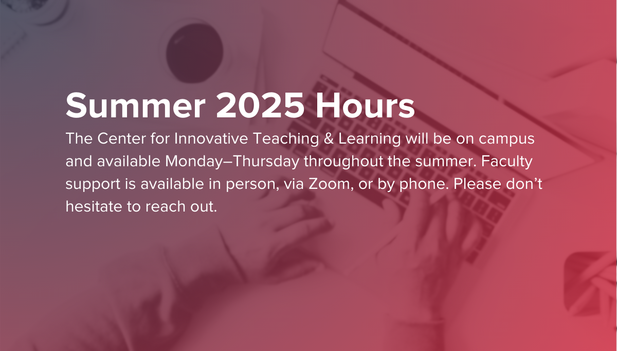 The Center for Innovative Teaching and Learning (CITL) supports the teaching and learning mission of the university by collaborating with faculty to design content and courses that promote an active learning environment for students enrolled in traditional face-to-face instruction, flipped classrooms, blended/hybrid courses, and online courses and degree programs.