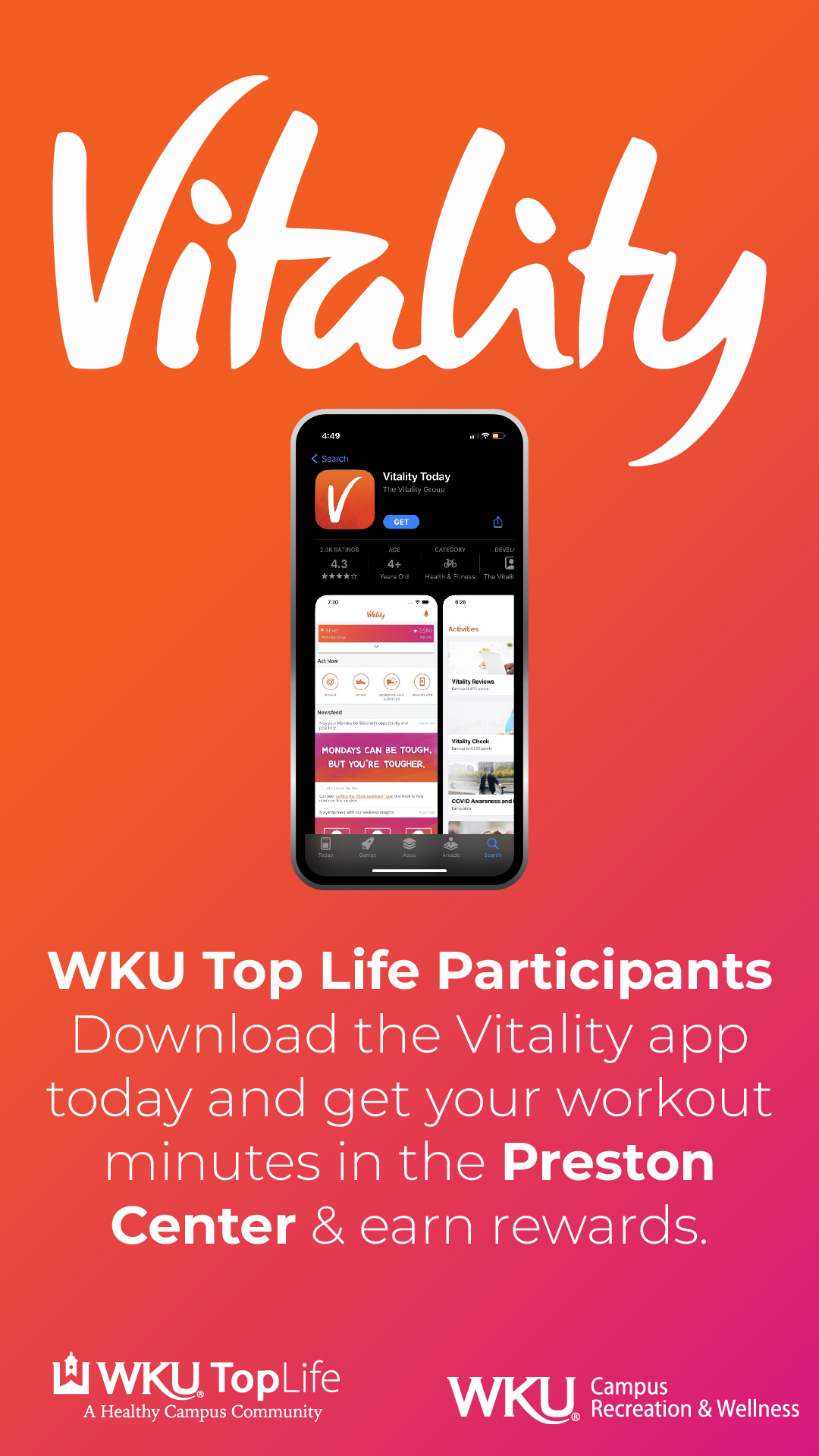 You can earn Vitality Points each time you come to the Preston Center. Just follow the steps below to link your account to the Preston Center.