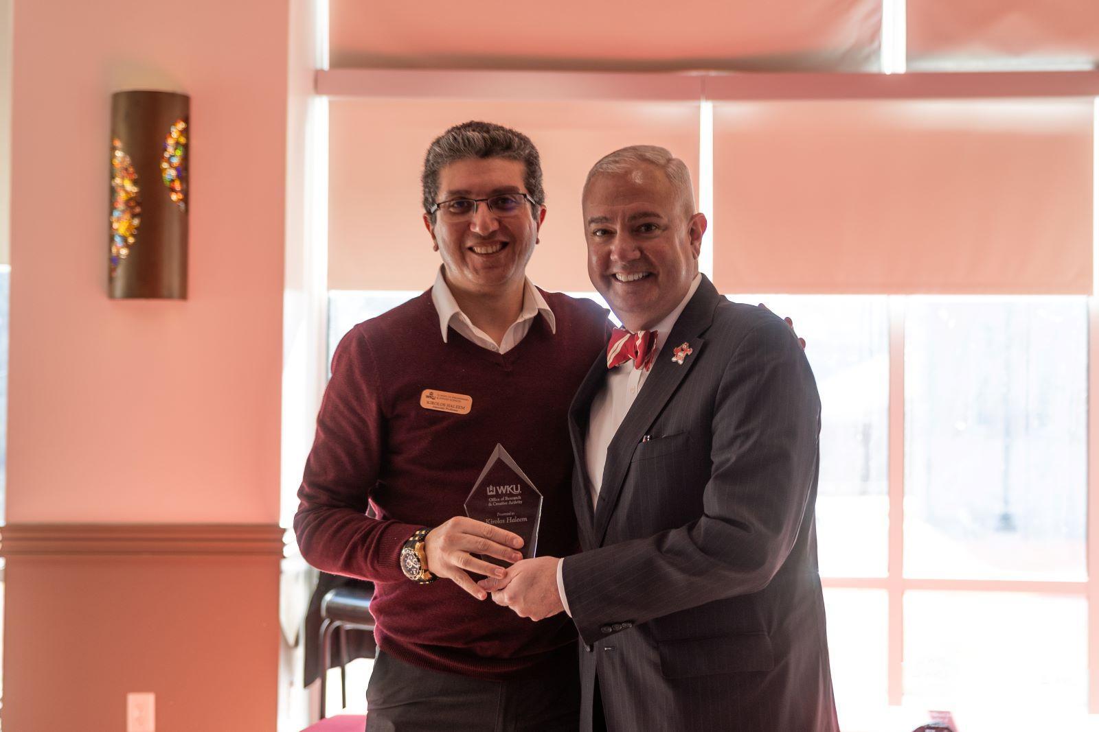 Prolific Proposer Trophy with WKU President Tim Caboni (WKU Office of Sponsored Programs