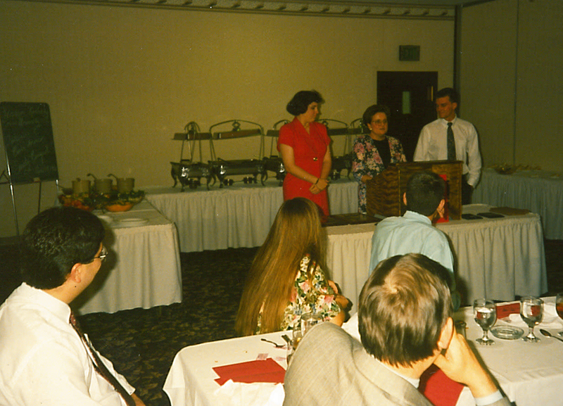 The team still competed in CEDA Debate in 1995, along with Lincoln-Douglas, but switched to the later exclusively at the end of the year. Director Woodring secured an endowment from Cora Dee Hooks, Woodring's former debate coach, after Hooks saw that Woodring had sent two students to compete at the Interstate Oratorical Contest, in Alaska.4 Later that school year, Director Woodring also secured an endowment for debate from Charles English of the law firm of English, Lucas, Priest and Owsley.5 The source claims that the team already had three such endowments and "several other annual contributions." While these archives do not seek to catalog all such endowments, that this and other endowments appear new in sources suggests that director Woodring was unusually active in raising money. Many of these endowments provided small scholarships to students of the team to at least 2017, the time of this writing.