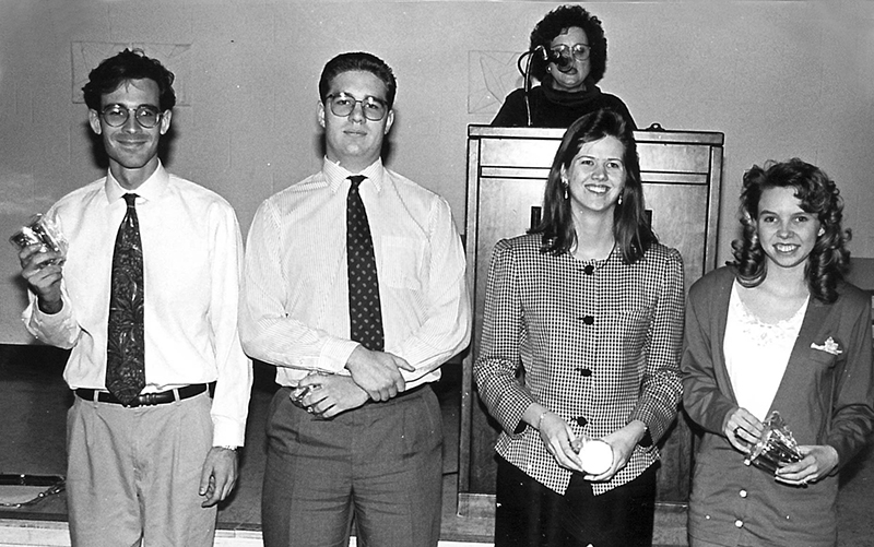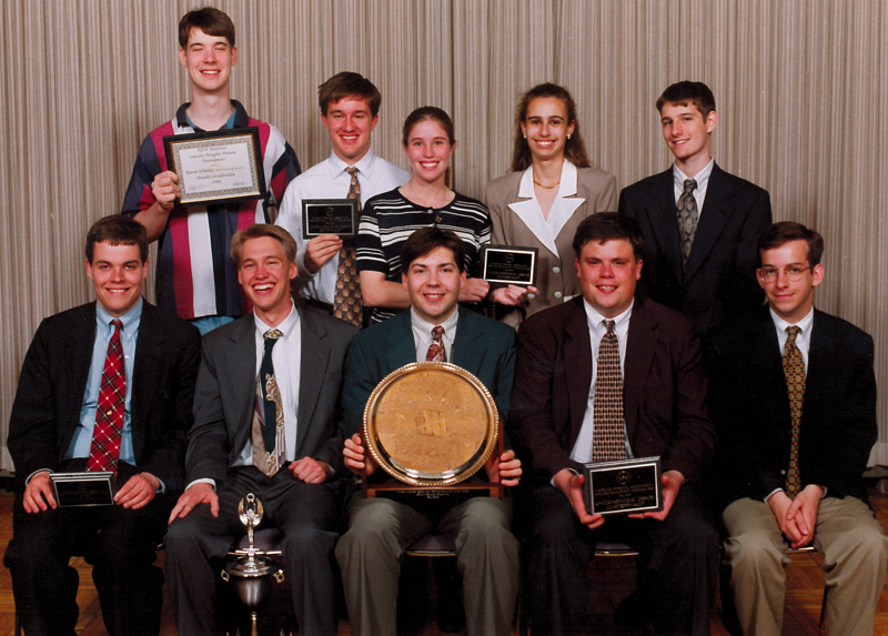DSR/TKA Debate national champions: R. Andy Spears, Doug Mory, Mike R. McDonner, Krista Knaul, Aaron Whaley, Kerri L. Richardson (Cheng), Amanda K. Gibson (Sisk), Kristin A. Pamperin (McDonner), and Chris S. Roberts (grad asst) |
