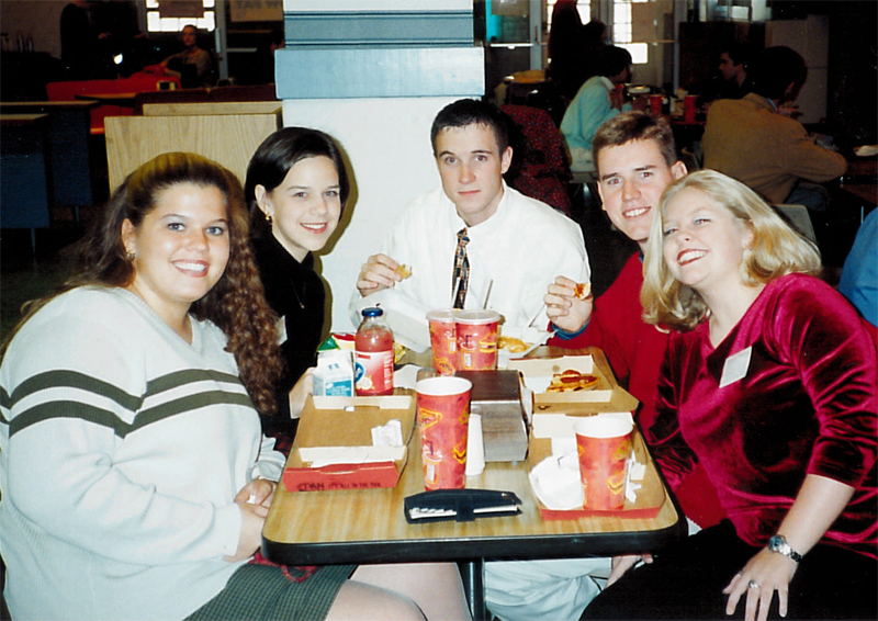Competing in CEDA debate: (front) Rachel Y. Hall, Holly J. Morris (Baldwin), Eric D. Shoemaker; (back) Dane W. Ferguson and Travis L. Holtrey |