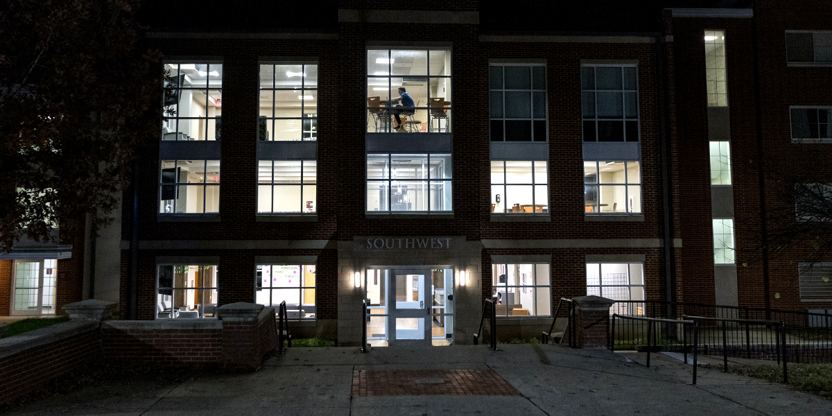 Southwest Hall houses 300 upperclass Honors College students on three floors and is located in the center of campus on the Charles Keown Plaza. Southwest Hall underwent renovations in 2017 that included a new lobby, community and study rooms, large kitchen, and theater room.