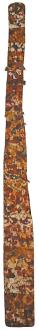 Joe Downing "Red Story" oil on leather on wood 18 x 188 inches